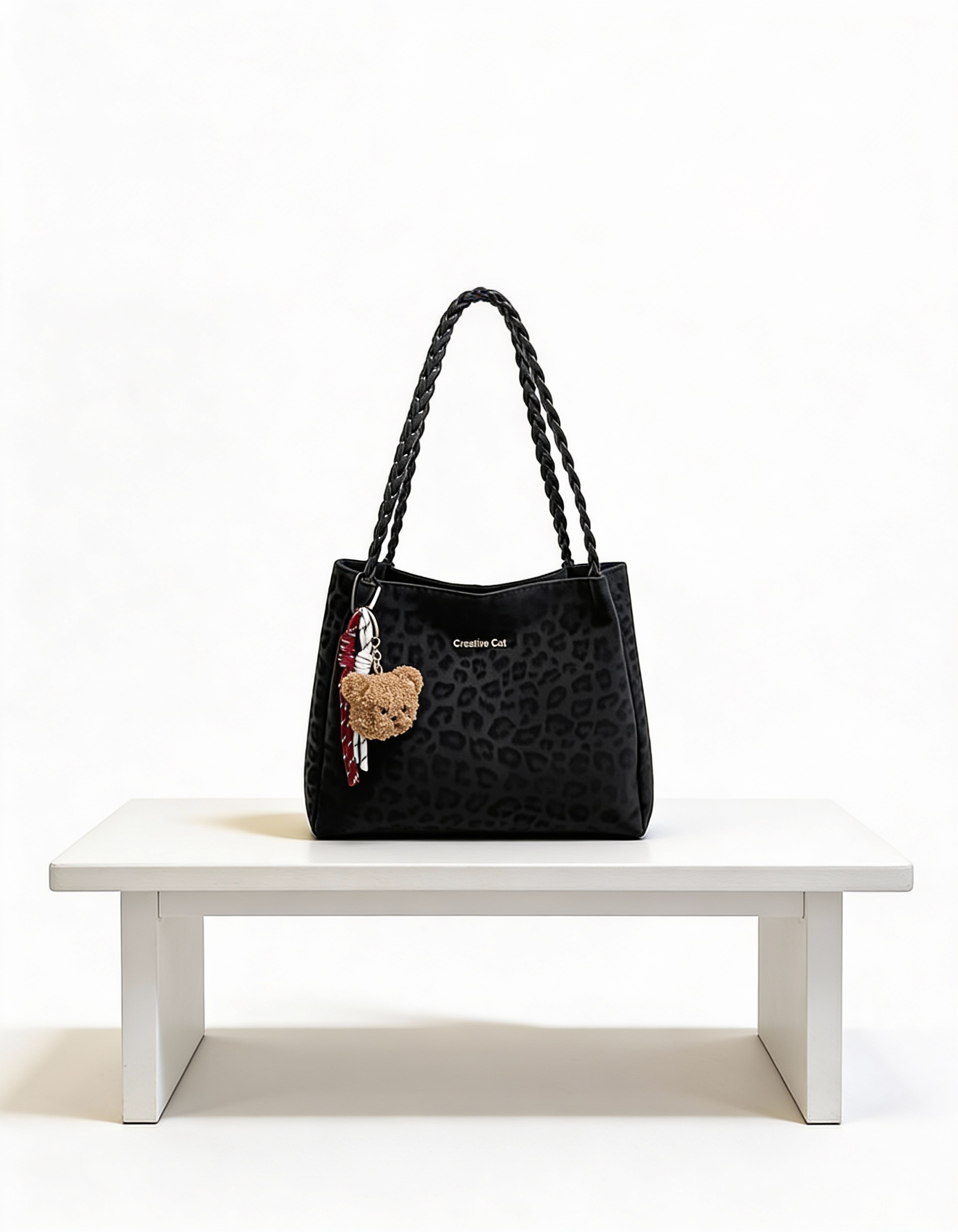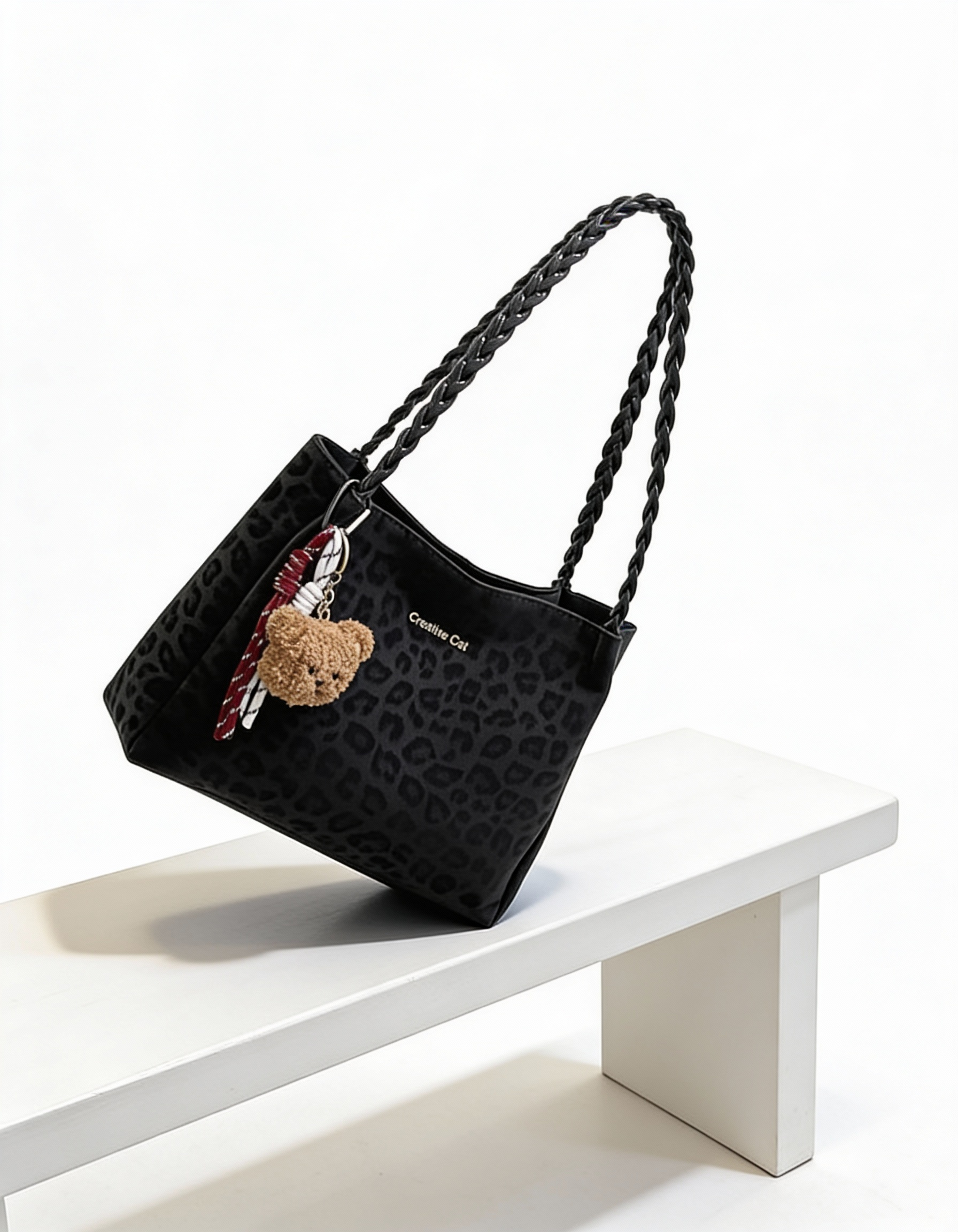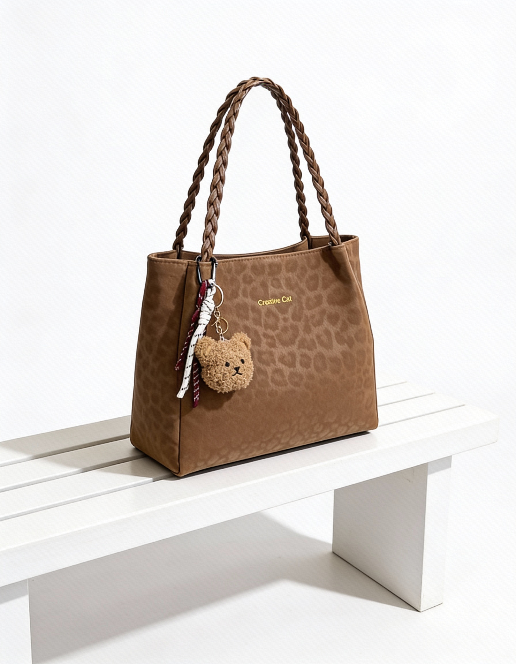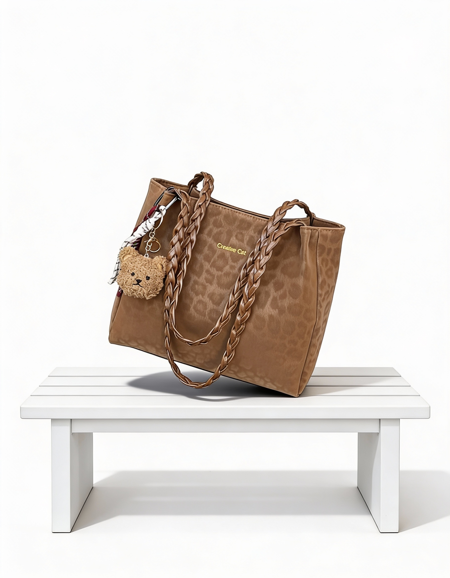 Esta mala destaca-se pelas alças trançadas, que adicionam um toque fashion e diferenciado ao design. Com grande capacidade e estrutura resistente, é ideal para quem procura uma mala marcante, prática e cheia de personalidade.